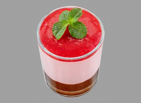 Allergenhinweise: G, G1, G3, M, Me, La GE 100g - Himbeercreme mit Fruchtsoße auf Schokokeks