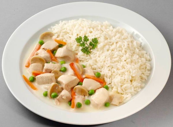 S - Feines Hühnerfrikassee „Frühlings Art" mit Langkornreis