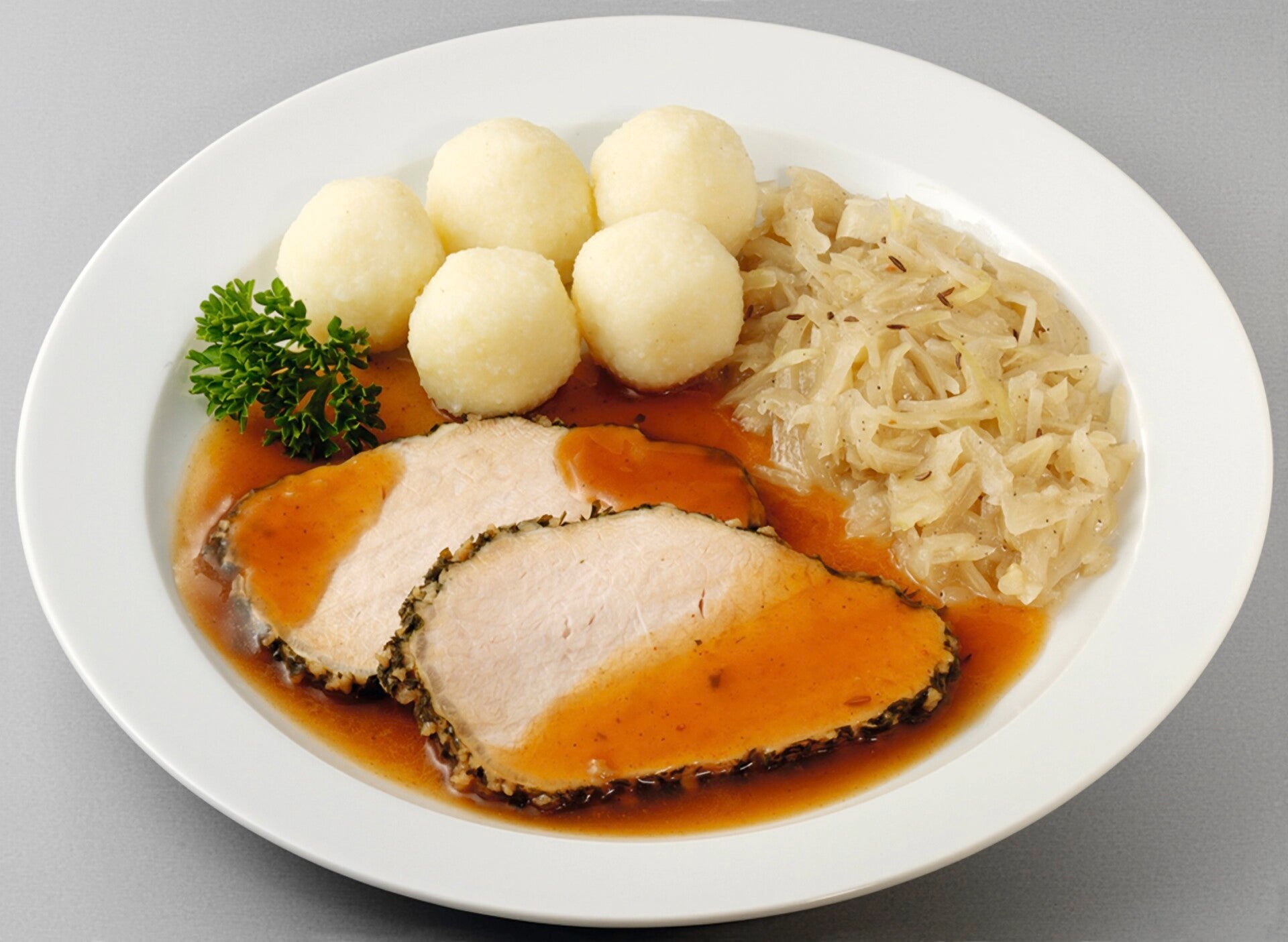 in einer Malz-Kümmel-Soße mit Bayrisch Kraut und