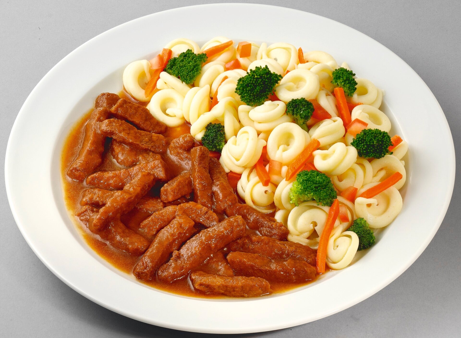 Nährwerte pro Portion: 2.195 kJ/521 kcal, 15 g Fett (davon 4,2 g gesättigte Fettsäuren), 70 g Kohlenhydrate (davon 8,8 g Zucker), 25 g Eiweiß, 3,5 g Salz