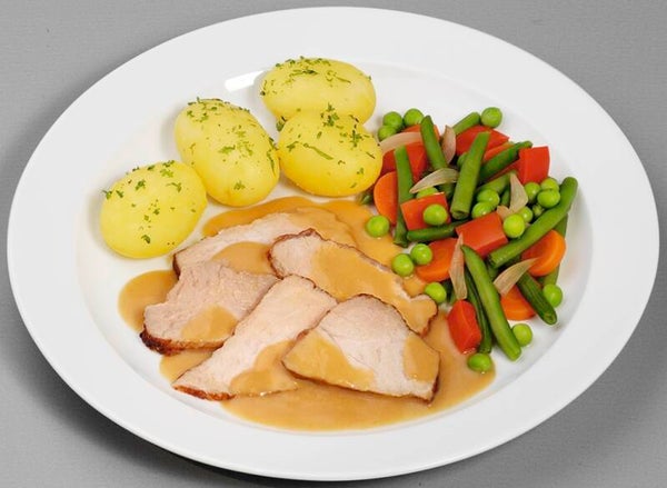 Nährwerte pro Portion: 2.571 kJ/615 kcal, 31 g Fett (davon 11 g gesättigte Fettsäuren), 58 g Kohlenhydrate (davon 8,9 g Zucker), 21 g Eiweiß, 4,7 g Salz